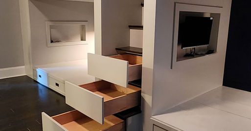 Transform your living spaces with our custom cabinetry and built-in solutions. From stunning kitchen cabinets and bathroom vanities to stylish entertainment centers, closets and bookcases, our custom-made pieces offer both functionality and aesthetics.